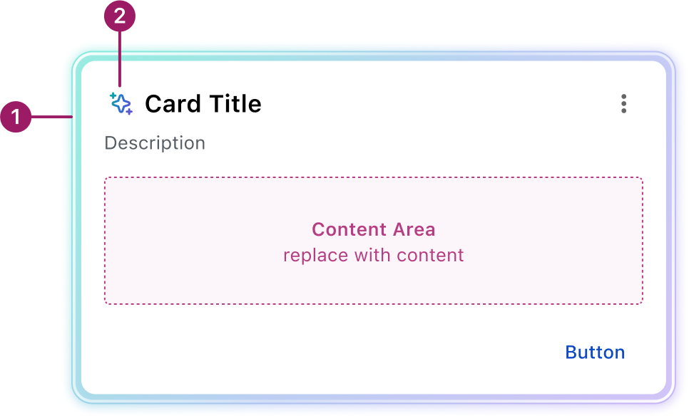 AI Card is a versatile container used to present AI-generated content in a structured way. It can display information, visualizations, images, actions, and input controls, while maintaining a consistent AI-branded style through the border and icon.