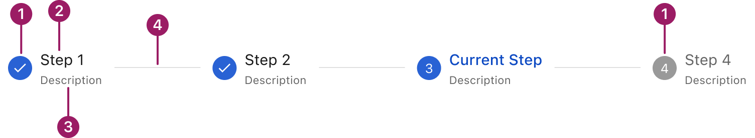 Stepper displays progress through a sequence of logical steps.The stepper is non-linear, which means steps may be completed in any order.