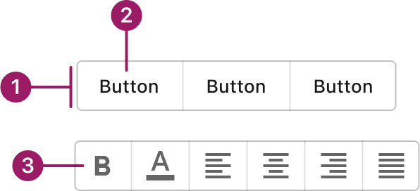 A toggle button allows users to select one or more options from a group by toggling individual buttons on or off.